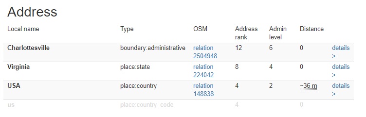 But looking for Charlottesville at Nominatim got me this: