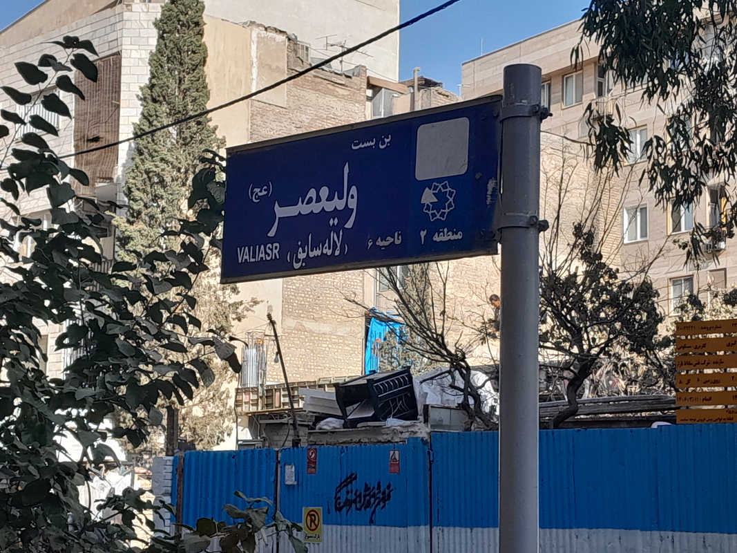 The official name has been changed by Tehran Municipality from “Kooche Laleh” to “Kooche Vali Asr” (Area 6, District 2).