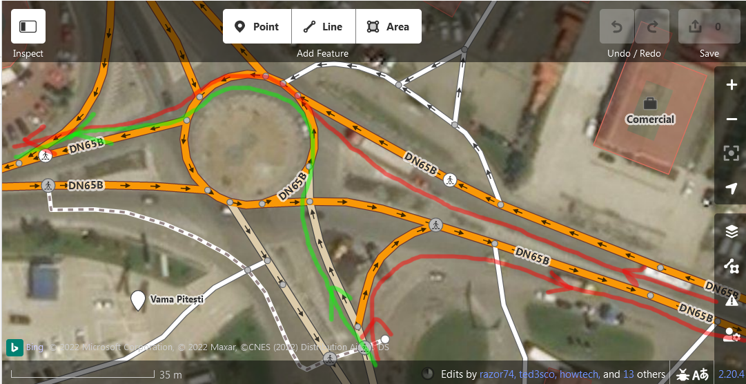 I was at the OMV gas station (mid-lower-right here https://www.openstreetmap.org/#map=18/44.82571/24.91486 ). As I exited the gas station through the western exting, the natural way to proceed towards Craiova would be to go north, enter the roundabout and exit through the second exit, westwards.